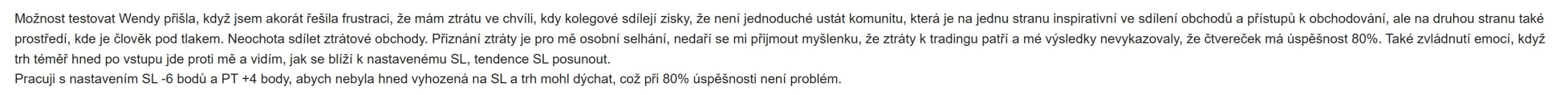 - "Díky Wendy obchoduju víc mechanicky a míň si posouvám SL jen v hlavě.“